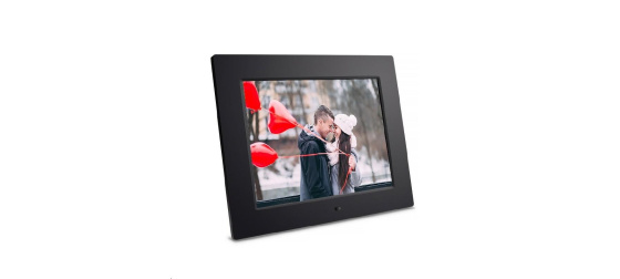 Digitální fotorámeček s úhlopříčkou 10", IPS, vysoké rozlišení 1024x768px, 4:3, prohlížení obrázků ve formátu JPEG, poslech hudby MP3/WMA a přehrávání videa MPEG1/2/4, AVI, XVID, multislot SDHC/MS a USB2 flash, HDMI in, Audio out, Auto Start, OSD menu, dálkový ovladač, mini USB2, černý. Funkce: SlideShow (prezentace), náhledy, zoom a otáčení obrázků, budík, hodiny, kalendář. Rozměr: 255x207x23 mm, hmotnost 700 g. Možnost uchycení na zeď nebo našrobování stojánku. Energetická kategorie B. Součástí dodávky síťový zdroj AC/DC 5V/2A, dálkové ovládání, mini USB/USB kabel..