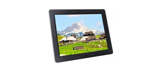 Digitální fotorámeček s úhlopříčkou 15", LED backlight, rozlišení 1024x768px, 4:3, 8GB interní paměť, prohlížení obrázků ve formátu JPEG/BMP/PNG, poslech hudby MP3 a přehrávání FullHD videa MPEG1/2/4, AVI, DIVX, MOV, RMVB, slot SD/MMC a USB2 flash, Audio out/HDMI/AV in, Auto Start/ON/OFF, OSD menu, dálkový ovladač, černý. Funkce: SlideShow (prezentace), budík, hodiny, kalendář, podpora Scroll-Text. Rozměr: 366x292x35 mm, hmotnost 1000 g. Možnost uchycení na zeď (VESA 75x75mm) nebo našrobování stojánku. Součástí dodávky síťový zdroj AC/DC 12V/1,5A, dálkové ovládání..