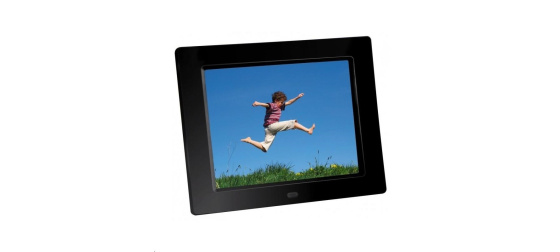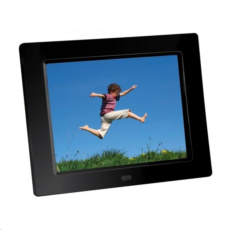Digitální fotorámeček s úhlopříčkou 8", LED backlight, rozlišení 1024x768px, poměr 4:3, prohlížení obrázků JPEG, poslech hudby MP3 a přehrávání videa HD 720p, multislot SDHC/MS, USB2 pro FlashStick, mini USB2, Audio out, IR dálkový ovladač, barva: černá. Auto Start, OSD menu, SlideShow, Zoom, otáčení obrázků, kontrast/ světelnost/ barevnost, budík, hodiny, kalendář. TFT LCD, uhlopříčka 20,3cm, světelnost 300 cd/m2, kontrast 300:1. Formáty Foto: JPEG, MBP, GIF, TIP, PNG - Video: MPEG 1/2/4 (Divx4.0/5.0, Xvid), AVI, M-JPEG, MKV, WMV, ASF, MOV, MP4, H.264, 3GP - Audio: MP3, WMA, OGG, AAC, APE, FLAC, WAV. Možnost uchycení na zeď nebo našrobování stojánku, výstup sluchátka, síťový zdroj AC/DC 5V/1,5A, rozměr: 220x176x23 mm, hmotnost 440 g..