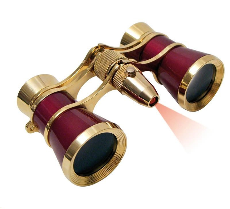 Dalekohled divadelní OPERA s LED světlem 3x25, zvětšení 3x, přední čočka 25mm, optický výstup 8,3mm, vzdálenost středu očí 60-72mm, světelnost 68,9, stmívání 8,7, rozměry 32x50x110 mm, hmotnost 140g, vínový a zlatý. Divadelní s Galileo nadčasovým designem pro zlepšený kulturní zážitek, minimální rozměry, malá hmotnost, vynikající optická kvalita s achromatickou úpravou skleněných čoček BK7, pozlacená kovová konstrukce s vínovými plastovými tubusy, decentní červené LED světlo pro možnost přečtení textu a orientace v prostoru. Včetně pouzdra a čistícího hadříku. Kvalitní skleněná optika v klasickém divadelním kukátku s červeným LED světlem..
