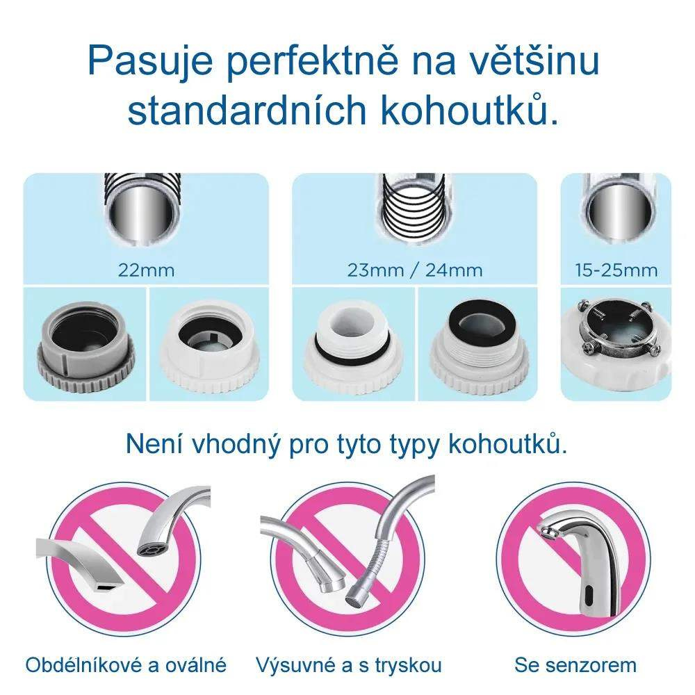 Systém je kompatibilní s většinou standardních vodovodních kohoutků. Pro specifické typy kohoutků je doporučeno ověřit kompatibilitu před instalací.