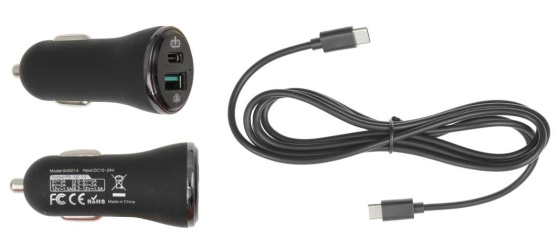 Cig-Plug Adapter, USB-A and USB-C interface, Quick Charger 3.0, 5V, 2.4A, incl.: USB-C to USB-C cable.
