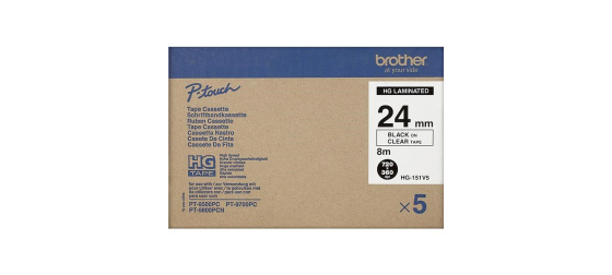 BROTHER HGE-151V5 Labelling Supplies, 24mm Black/Clear (5 pcs Pack) High Grade Tape