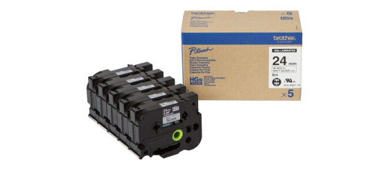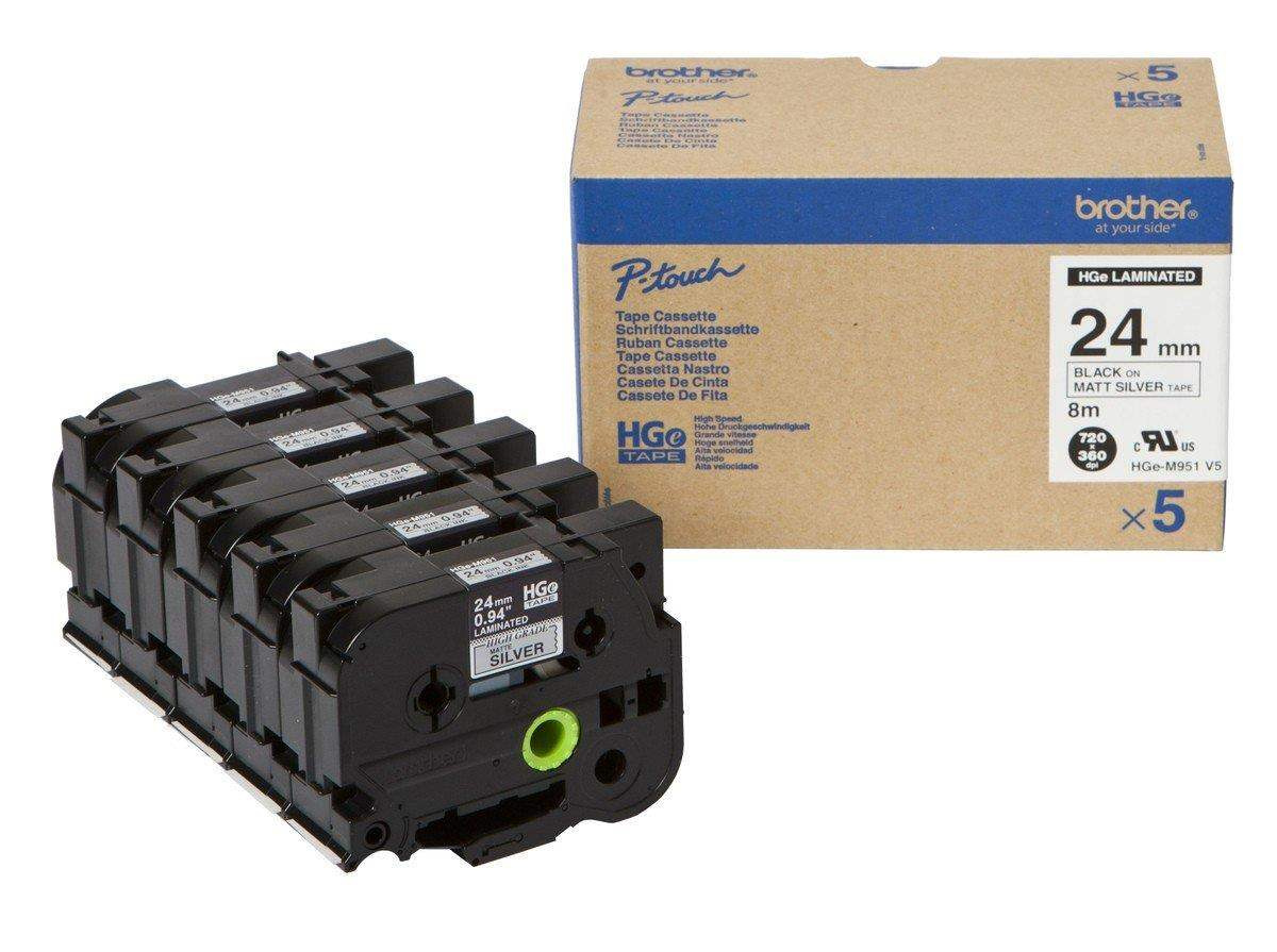 BROTHER HGE-M951V5 Labelling Supplies, 24mm Black/Matt Silver (5 pcs Pack) High Grade Tape