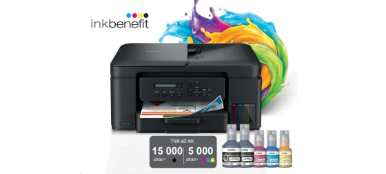 Kompaktní tiskárna 3 v 1 DCP-T730DW tiskne déle s inkoustovými lahvičkami se super vysokou výtěžností, což snižuje náklady na barevnou stránku. Rychle naplňte nádržky během několika sekund, aniž byste museli držet lahvičky. Doplňování inkoustů je jednoduché a bez rizika jeho rozlití. Inovativní systém zámku lahviček zajišťuje, že vždy doplníte správnou barvu.