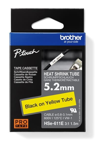 BROTHER smršťovací bužírka - HSE-611E žlutá pro E300VP H300 H500 E550 P700 P750 D800 P900 P950 - 5,2mm / o 0,8-3,1 / 3:1
