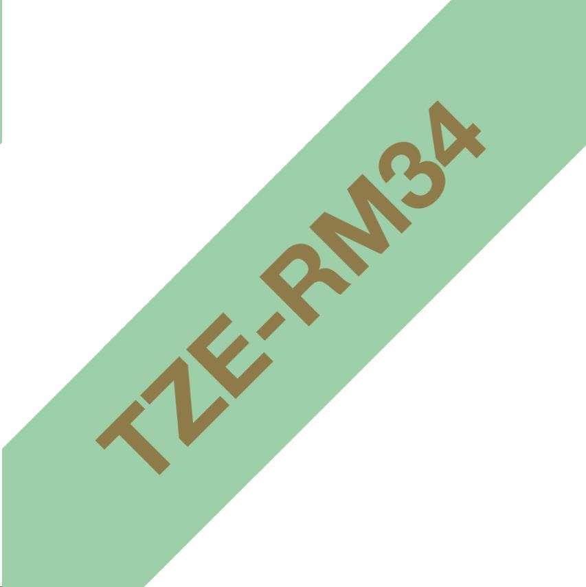 Popis BROTHER TZE-RM34 - kazeta TZ šířky 12mm, TEXTILNÍ páska 4m- pro tvorbu dárků - NELEPÍCÍ - MÁTOVÁ PÁSKA ZLATÝ POTISK gold