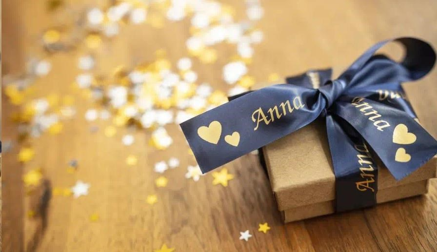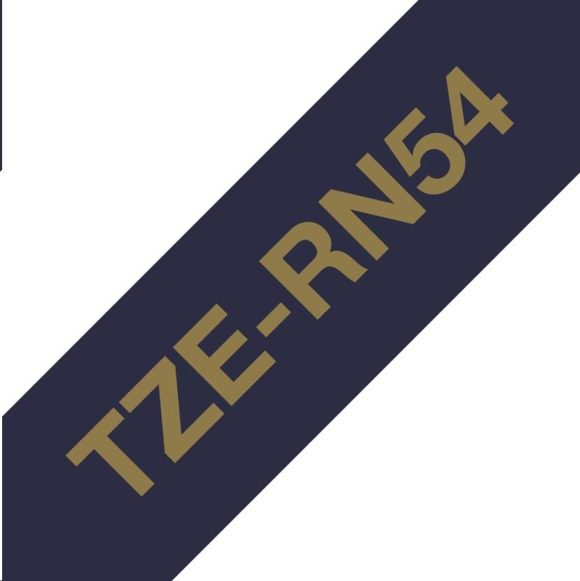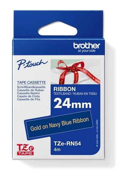 BROTHER TZE-RN54 - kazeta TZ šířky 24mm, TEXTILNÍ páska 4m- pro tvorbu dárků - NELEPÍCÍ - MODRÁ PÁSKA, ZLATÝ POTISK gold