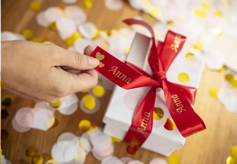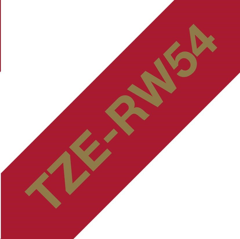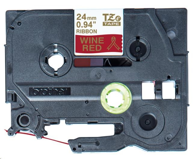 Popis BROTHER TZE-RW54 - kazeta TZ šířky 24mm, TEXTILNÍ páska 4m- pro tvorbu dárků - NELEPÍCÍ -ČERVENÁ PÁSKA ZLATÝ POTISK gold