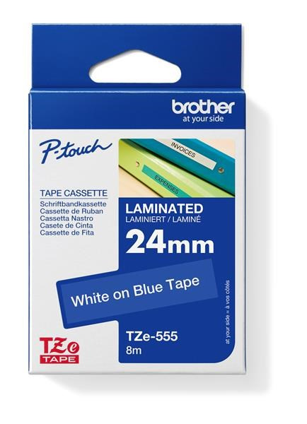 BROTHER TZE555 - kazeta TZ šířky 24mm, laminovaná TZE-555, modrá/bílé písmo