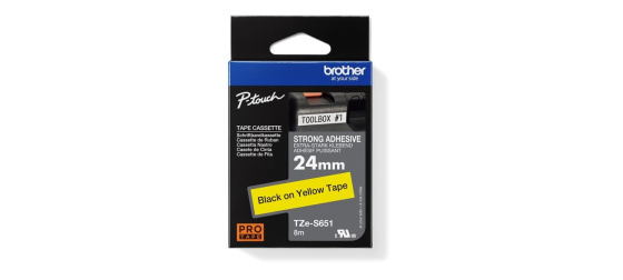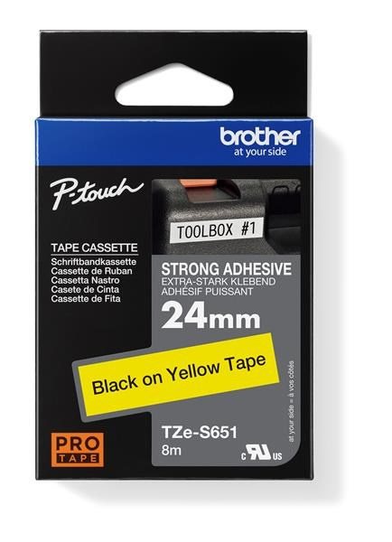 BROTHER TZES651 - kazeta TZ šířky 24mm, extrémně adhesivní lamino TZE-S651, žlutá/černé písmo