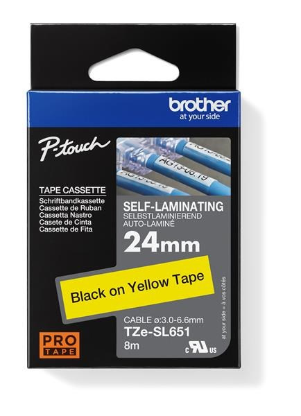 Popis Samolaminovací páska TZe-SL651 s délkou 24 mm s černým tiskem na žluté byla vyvinutá pro dlouhodobou identifikaci síťových kabelů. Má speciální lepicí vlastnosti štítků pro trvanlivé pevné ovinutí kolem vašich vodičů a kabelů. Kompatibilní s některými modely P-touch, které používají pásky TZe 24 mm a 36 mm.