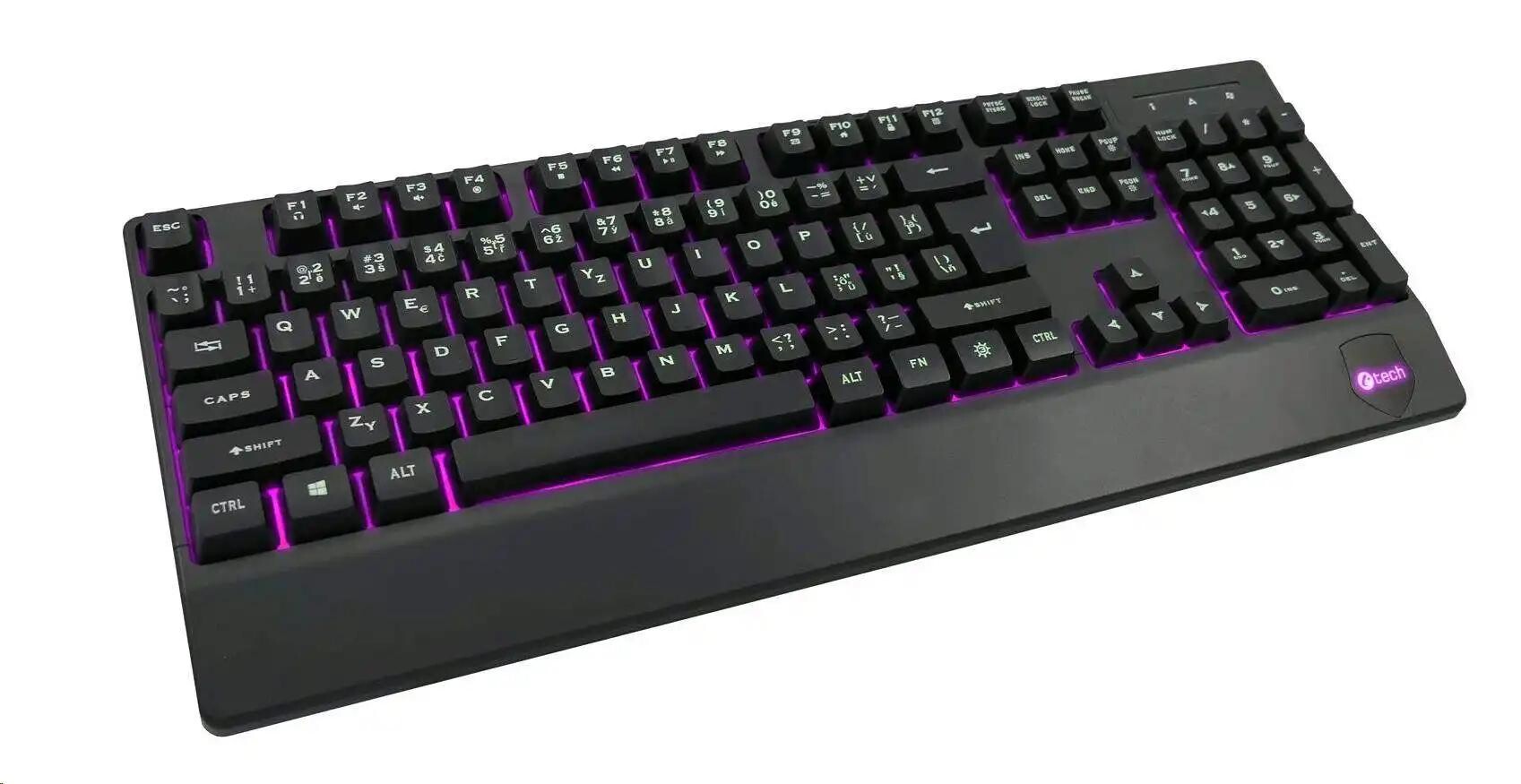 Klávesnice C-Tech KB-104BK kombinuje styl, funkčnost a pohodlí. Nabízí podsvětlené klávesy s možností volby mezi třemi barvami – modrou, červenou a fialovou, které lze snadno přepínat nebo vypnout pomocí speciální klávesy.