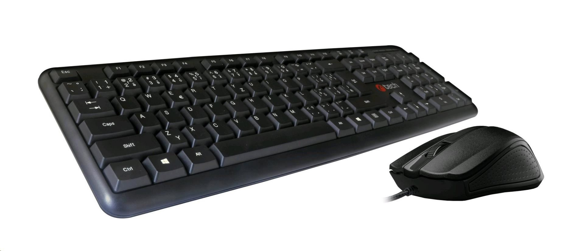 Klávesnice C-TECH KBM-102, drátový combo set s myší, USB, CZ/SK
