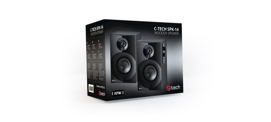 Dřevěné dvoupásmové reproduktory C-TECH SPK-14 jsou díky svému designu vhodné do moderně zařízených kanceláří nebo pokojů. Na bočním panelu reproduktorů se nachází ovládání hlasitosti a praktický výstup na sluchátka. Tato reprosoustava nabídne celkový výkon 12W RMS, což je dost i na kvalitní a hlasitý poslech hudby. Reproduktory jsou napájeny z elektrické sítě a k PC se připojují přes 3,5mm jack kabel