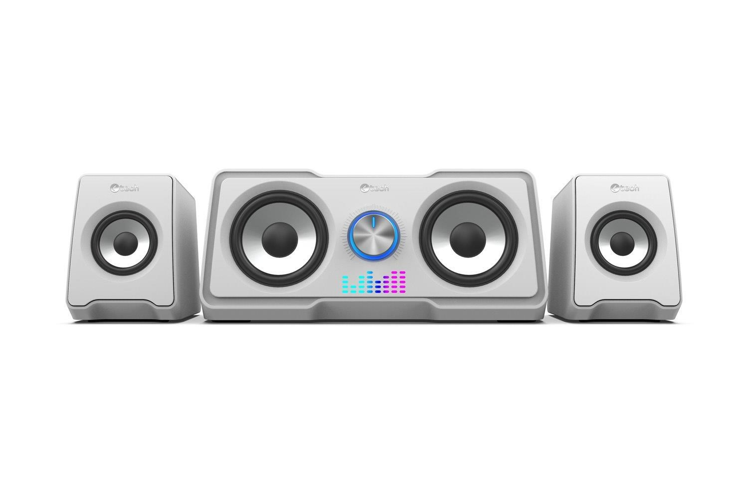 Kompaktní PC reproduktory C-tech SPK-16WH 2.2 vám zprostředkují kvalitní zvuk s výkonem 16W a frekvenčním rozsahem 150-20kHz. Díky unikátní kombinaci měničů 2+2 je reprodukovaný zvuk bohatší a více dynamický, takže si jej využijete nejen při poslechu oblíbených skladem, ale i při hraní her. O jedinečnou atmosféru při poslechu hudby se postará automatické RGB podsvícení. K ovládání hlasitosti poslouží regulátor nacházející se na jednom z reproduktorů. Tento regulátor slouží k zapnutí a vypnutí zařízení. Připojení soustavy k zařízením zajistí kabel s 3,5mm jackem, napájení zase USB kabel.