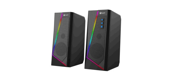 Stolní PC reproduktory C-tech SPK-17 s elegantním designem a decentním RGB osvětlením se stanou stylovým doplňkem každého pracovního stolu. Díky 40mm měničům s širokým frekvenčním rozsahem dopřejí vašim uším velmi kvalitní reprodukci. RGB osvětlení disponuje 6 různými světelnými režimy, které vám zaručí originální vizuální zážitky. Volba režimu je velmi jednoduchá a to dotykem na horní ploše řídícího reproduktoru. Reproduktory připojíte k počítači pomocí 3,5mm audio kabelu a nemusíte si dělat starosti ani s přídavným napájením, protože reproduktory C-tech SPK-17 jsou napájené přímo z USB vašeho počítače a tak se Vám automaticky spustí či vypnou společně s počítačem či notebookem. K ovládání hlasitosti poslouží tlačítka nacházející se na jednom z reproduktorů. Společně s ovládáním hlasitosti, je možno stiskem dalšího tlačítka vypnout RGB podsvětlení reproduktoru.