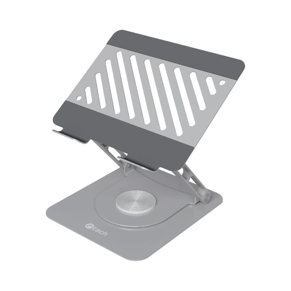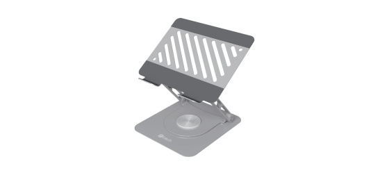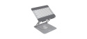 Quallis NTS-200 podporuje notebooky až do velikosti 16" a jeho pevná hliníková konstrukce zajišťuje vysokou odolnost, nosnost a elegantní vzhled. Na rozdíl od běžných stojanů je vybaven otočnou základnou s 360° rotací, což umožňuje plynulé natáčení notebooku bez nutnosti přemisťování celé konstrukce – ideální při prezentacích, sdílení obrazovky nebo střídavé práci více uživatelů.