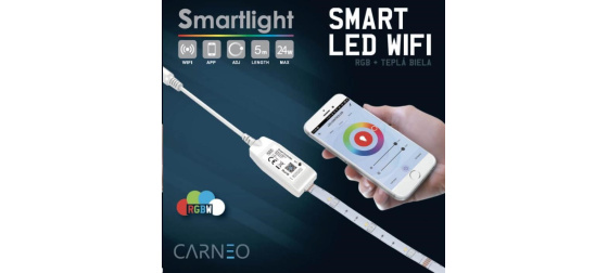 LED pás Carneo Smartlight RGBW Wifi je 5m dlouhý flexibilní samolepící pás, osazený celkem 240ks LED diod s plnobarevným světelným spektrem RGB a teplým bílým světlem. Barvu a intenzitu světla si můžete regulovat buď pomocí mobilní aplikace SmartLife nebo pomocí systémů inteligentního ovládání domácnosti Amazon Alexa nebo Google Home. Aplikace je kompatibilní se zařízeními Android ve verzi 4.0 a vyšší a také se zařízeními iOS ve verzi 8.1 a vyšší. Led pás se ovládá pomocí technologie WIFI, proto je třeba jej připojit do vaší domácí Wifi sítě.
