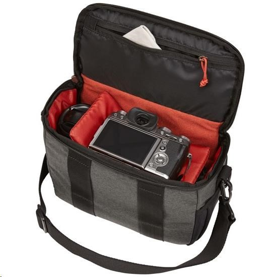 - Do polstrovaného prostoru pro fotoaparát se vejde zrcadlovka nebo bezzrcadlovka s jedním nebo dvěma extra objektivy.