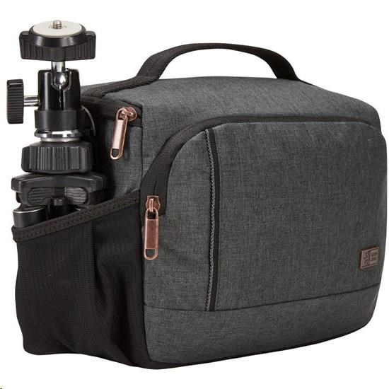 Rozměrově perfektně velká taška přes rameno s úložným prostorem pro digitální zrcadlovku, extra objektiv a mini stativ.