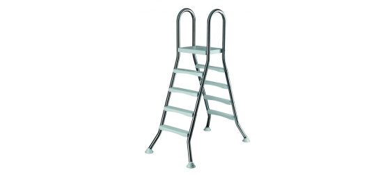Bazénový žebřík pro bazény se stěnou až 122 cm, vyrobený z kvalitní nerezové oceli, která zajistí jeho dlouhou životnost. Žebřík má silné stabilní plastové schodnice a plošinu s protiskluzovou úpravou, udrží hmotnost až 150 kg. Žebřík má 4 stupně na vnitřní a vnější straně. Nohy žebříku jsou zakončeny koncovkami z protiskluzové gumy se stabilní podložkou, které zabraňují nechtěnému pohybu žebříku a zvyšují tak bezpečnost. Zároveň zabraňují poškození vašeho bazénu.