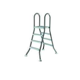 Bazénový žebřík pro bazény se stěnou až 90 cm, vyrobený z kvalitní nerezové oceli, která zajistí jeho dlouhou životnost. Žebřík má silné stabilní plastové schodnice a plošinu s protiskluzovou úpravou , udrží hmotnost až 150 kg. Žebřík má 3 stupně na vnitřní a vnější straně. Nohy žebříku jsou zakončeny koncovkami z protiskluzové gumy se stabilní podložkou, které zabraňují nechtěnému pohybu žebříku a zvyšují tak bezpečnost. Zároveň zabraňují poškození vašeho bazénu.