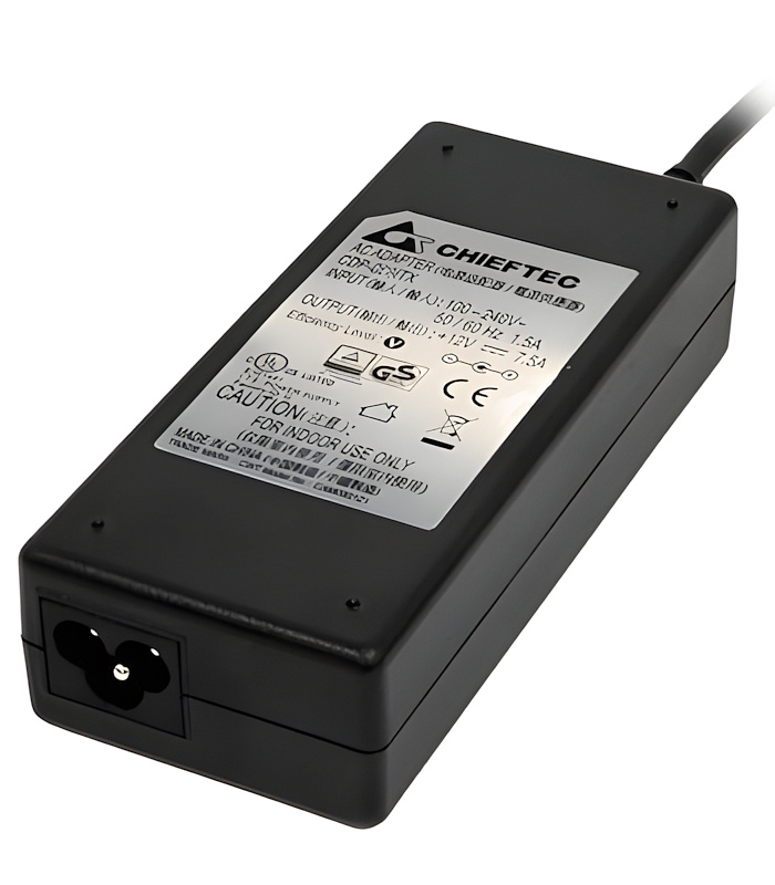 Napájecí adaptér pracuje se vstupním napětím 100–240 V a poskytuje stabilní výstup 12 V s výkonem až 85 W. Interní DC/DC modul následně převádí napětí pro jednotlivé komponenty – základní desku, úložiště (SATA/Molex) a další nízkoenergetické prvky. Díky tomu je řešení velmi efektivní a dosahuje účinnosti až 87 %.