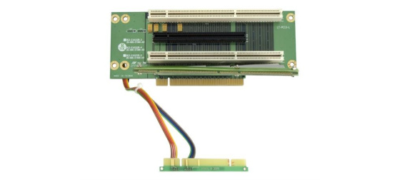 The Riser card has one PCI-E 16x slot and two 3,3V 64-bit PCI-X slots, PCI-X extension cable, PCI signal cable
