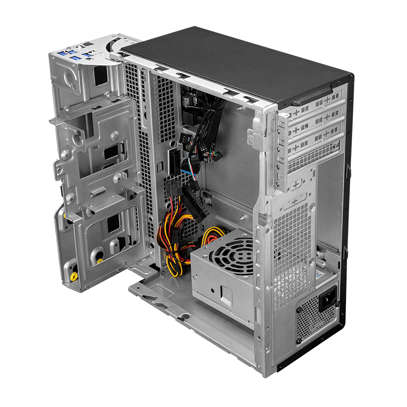 Součástí skříně je kvalitní napájecí zdroj Chieftec GPF-300P s výkonem 300 W ve formátu TFX. Tento zdroj poskytuje stabilní napájení pro běžné kancelářské nebo domácí sestavy a je vhodný pro systémy s nízkou až střední spotřebou energie.