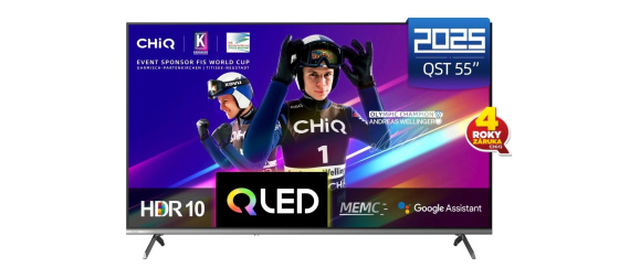 CHiQ U55QST TV 55", UHD, QLED, ultratenká, Google TV, DLG 120 Hz, Dolby Audio, Frameless, metalická