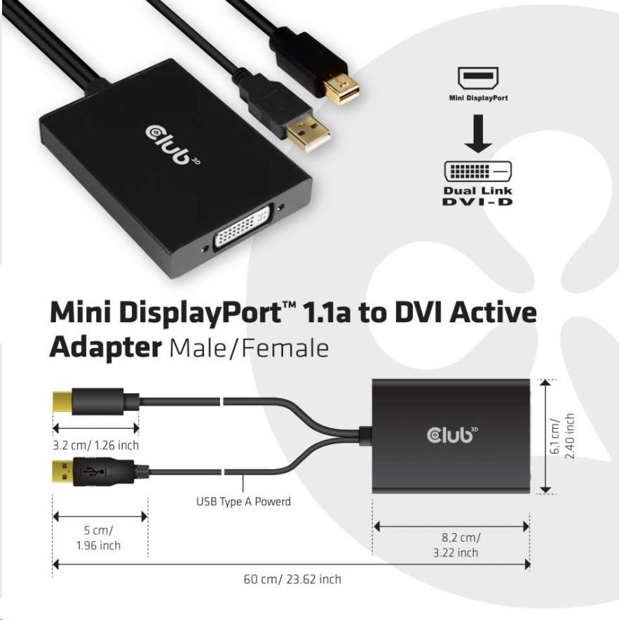 | Club 3D Mini DisplayPort™ to Dual Link DVI Active Adapter |