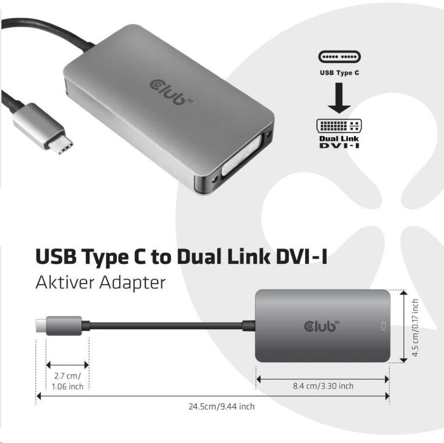 | Club 3D USB Type C to Dual Link DVI-I Active Adapter |
