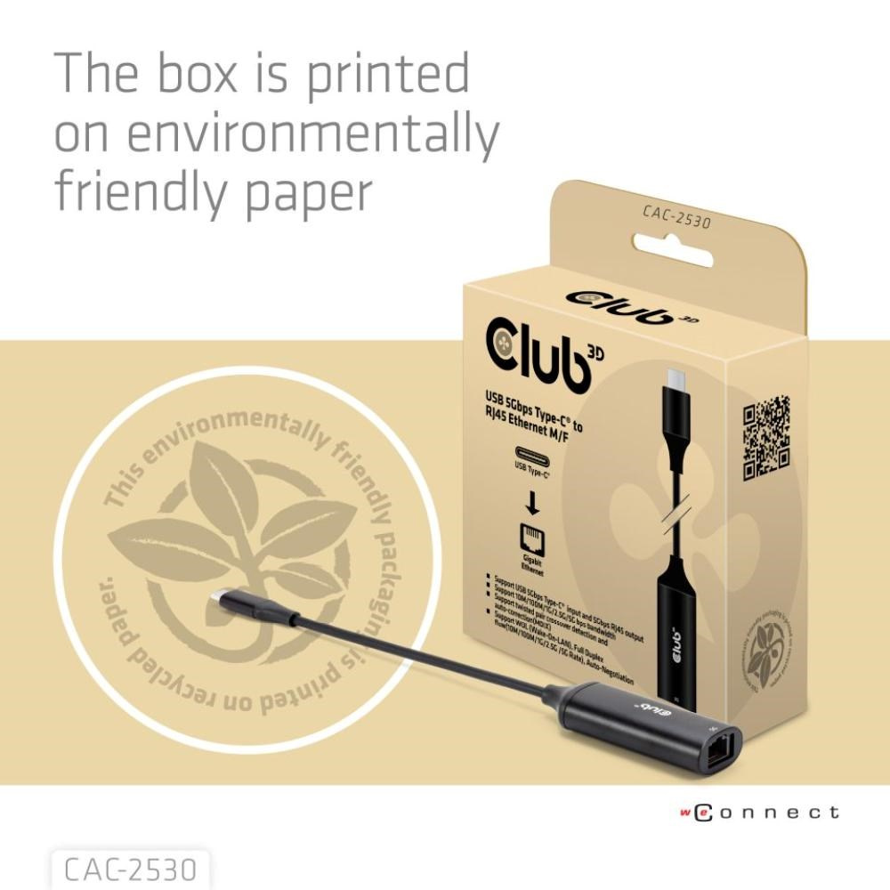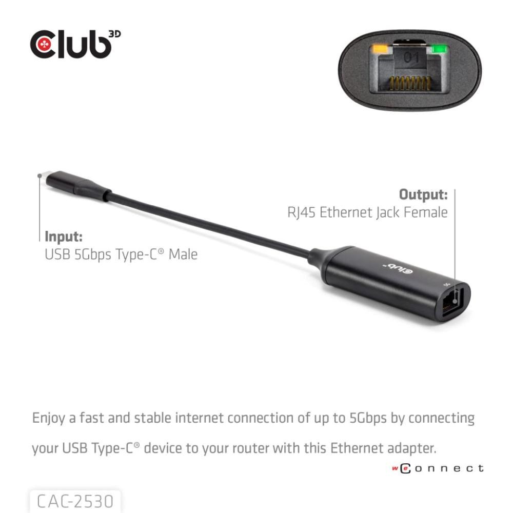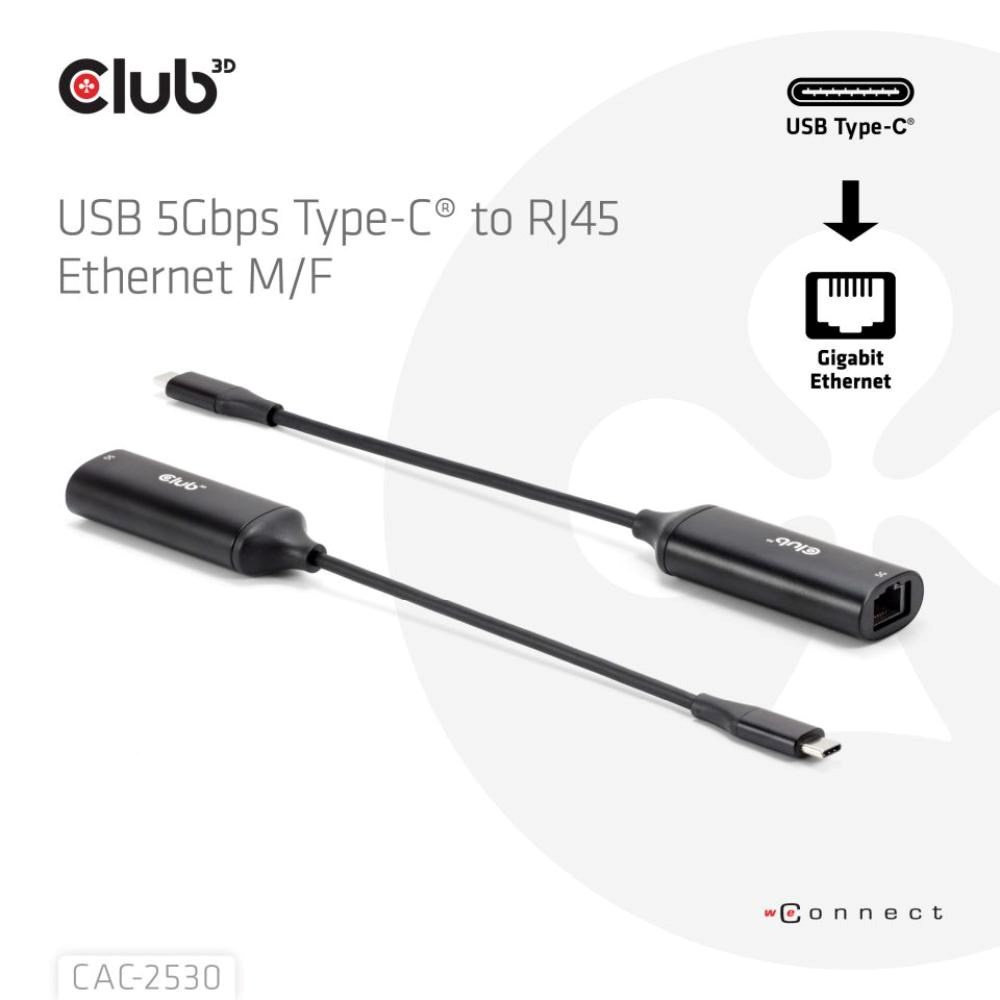 - Club3D CAC-2530 USB-C na RJ45 Gigabit Ethernet adaptér (5 Gbps)