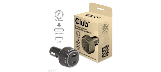 Club 3D CAC-1922 je vysoce výkonný a módní design max. 63W nabíječka do auta s podporou QC3.0 a Power Delivery (PD). S touto nabíječkou můžete nabíjet jakákoli zařízení (např.: digitální fotoaparáty, PDA, notebook, mobilní telefony, USB příslušenství) s vaším autem, když je to potřeba. Je vybaven dvěma USB konektory (jeden konektor USB Type-C a jeden konektor USB Type-A) pro napájení. Tento produkt umožňuje nabíjení dvou zařízení současně a produkt poskytuje maximální výkon 63 wattů. Port USB-C je speciálně navržen pro zařízení s podporou typu C. Pro rozlišení mezi QC a PD nabíjením se LED kontrolka rozsvítí modře pro Quick Charge (QC) nebo červeně pro Power Delivery (PD).