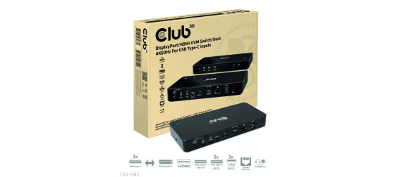 Club 3D CSV-1585 je dokovací stanice MST s duálním (HDMI+DP) displejem s funkcí KVM. Dva USB Type-C vstupy pro připojení dvou různých hostitelů pro rychlé zvýšení produktivity mezi dvěma hostiteli, stačí jedno kliknutí na horní tlačítko nebo kliknutím na tlačítko dálkového ovladače připojeného kabelu. 3xUSB Type-A+3xUSB Type-C poskytují dostatečné připojení pro externí zařízení s přenosem dat až 5Gbps. 120W stejnosměrný zdroj poskytuje 65W napájení (PD) pro nabíjení vašeho notebooku USB Type-C nebo hostitelských zařízení. Kompatibilní s jakýmkoli zařízením podporujícím režim DP Alt Mode s portem USB Type-C, jako je notebook, stolní počítač, tablet, telefon atd. Podporujte nabíjení pomocí portů PC1 a PC2, stisknutím tlačítka POWER SWITCH přepněte vstupní napájení. Použití 20V/6A 120W DC napájecího adaptéru pro napájení dokovací stanice, mezi 65W nabíjením pro hostitele PC2 současně. Externí napájení pro PC1 přes port USB Type-C1, nabíjecí výkon závisí na adaptéru PD. Se zámkem Kensington. Zapoj a hraj.