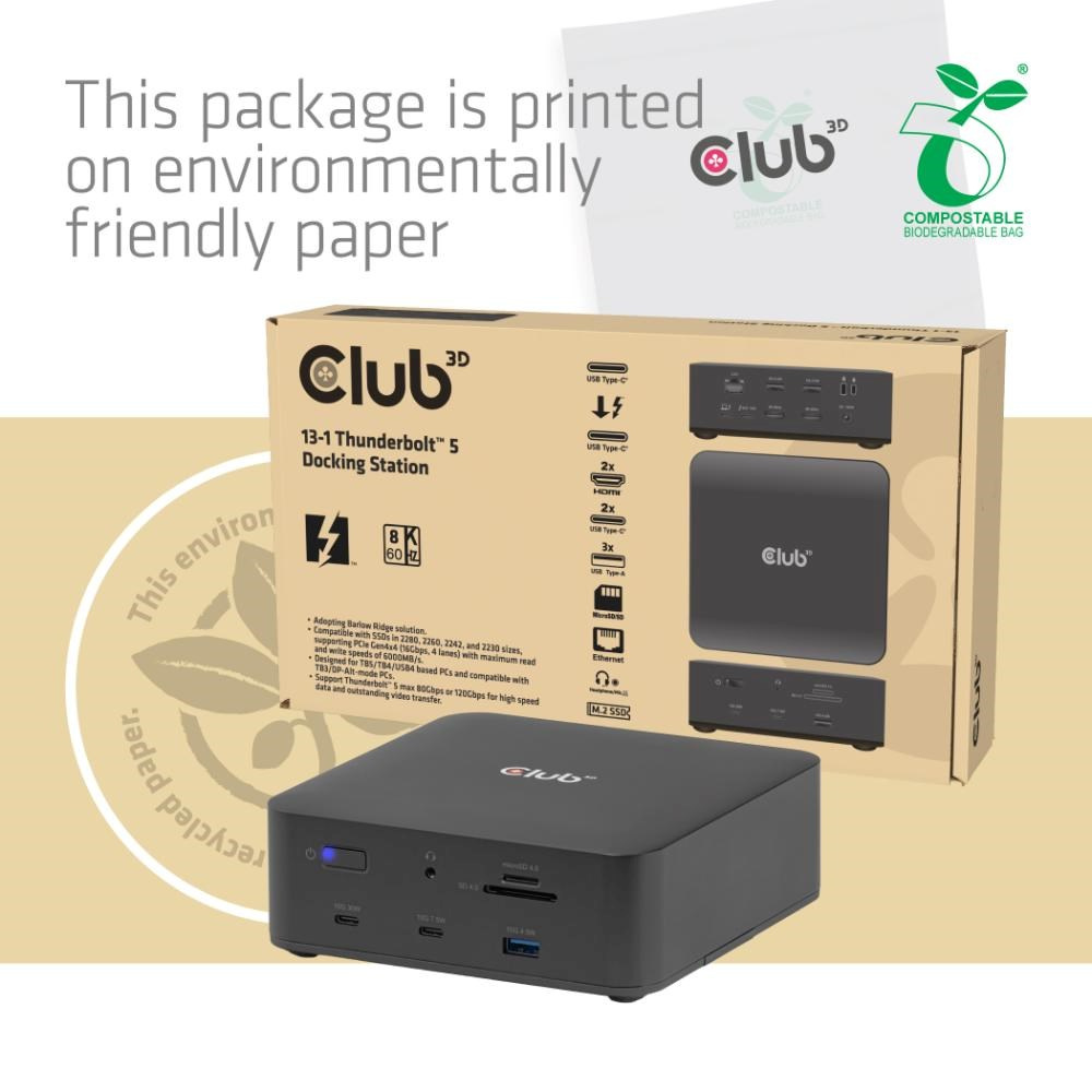 CSV-2562 je certifikovaná dokovací stanice Thunderbolt 5, která sjednocuje všechny nezbytné porty do jednoho zařízení, včetně slotu pro SSD umožňujícího snadné rozšíření úložiště počítače s rychlostí přenosu dat odpovídající internímu disku.
