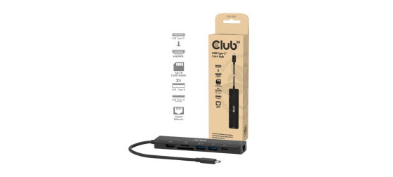 Club 3D CSV-2553 je USB-C, rozbočovač 7 v 1 s HDMI, 2x USB, RJ45, sloty pro karty microSD/SD a portem USB-C samice, který představuje ideální řešení pro rozšíření portu USB-C nebo Thunderbolt 3 (PC/Laptop/tablet/mobilní telefon atd.) speciálně pro hostitele s jediným portem USB-C.