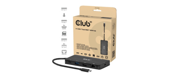 Club 3D CSV-2552 je rozbočovač USB-C® 9-1 s duálním HDMI™, 2x USB-A, 1x USB-C® data, RJ45, sloty pro karty Micro SD/SD a nabíjecím portem USB-C®, který představuje ideální řešení pro rozšíření portu USB-C® nebo Thunderbolt hostitele (PC/Laptop/Mobilní telefon atd.), zejména pro hostitele s jediným portem USB-C.