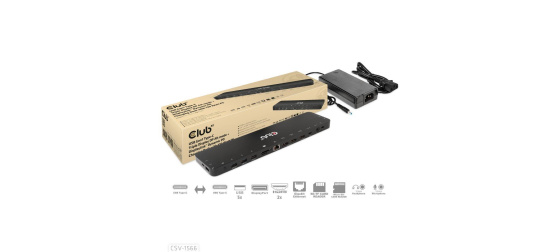 The Club 3D CSV-1566 USB Gen1 Type-C Triple Display DP™ Alt mode + Displaylink™/ USB mode™ Dynamic PD Charging Dock with 120 Watt PS, is an integrated solution combining Video, Data, Power, Ethernet and Audio. This Dock is perfectly suited for extending a Type-C port or USB-A port(via a Type-C to USB converter) to provide multiple audio,video, data and power ports, providing an ideal solution to satisfy users who require multiple ports. This dock has 3 video ports (2 HDMI™, one from DP™1.2 Alt mode, one from USB mode, 1 Displayport™ from USB mode) for video experience, 4 USB Gen1 Type-A and 1 USB Gen1 Type-C for data transmission, RJ45 for super high speed Ethernet, SD/TF card slots for connecting memory cards. Besides, it has a smart charging port, bringing fast charging performance for connected mobile device(Apple,samsung phones, pads,etc). A 120W power adapter is provided to supply power for the function of this dock and charge the host with max 80W (20V/4A). This dock is a bottom design with can be put underneath the host. It can work on DP™1.2 Alt mode supported USB Type-C and -A hosts.