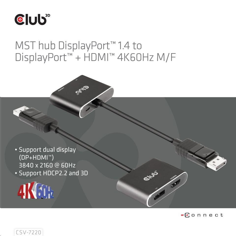 The CSV-7220 is a MST hub DisplayPort™ 1.4 to DisplayPort™ + HDMI™ 4K60Hz M/F. This DisplayPort™ 1.4 MST hub is designed to cater for your most versatile connectivity demands, such as Tablet, laptop, etc. with a free DP™ (DisplayPort) port.