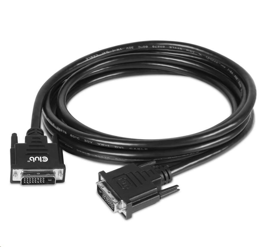 The Club 3D CAC-1223 is a DVI-D(24+1) Male to DVI-D(24+1) Male Cable. This cable is fully Bidirectional. This CAC-1223 Cable is the easiest solution for connecting your DVI-D Monitor, Projector or Television to the DVI-D output of your PC / Notebook / Game Console.