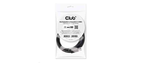 Kabel Club 3D The Club 3D Mini DisplayPort™ na DisplayPort™ 1.2 umožňuje připojení vašich zařízení s podporou Mini DisplayPort ™ k monitoru nebo k jinému zařízení s rozhraním DisplayPort ™. Konektory obsahují zámky, které poskytující bezpečné a spolehlivé připojení. Stačí jednoduše stisknout vestavěné tlačítko pro zablokování konektoru. Kabel je 30AWG a plně bi-směrový.