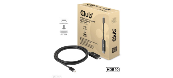 Popis Club3D kabel miniDP 1.4 na HDMI, 4K120Hz nebo 8K60Hz HDR10+, M/M, 1.8m