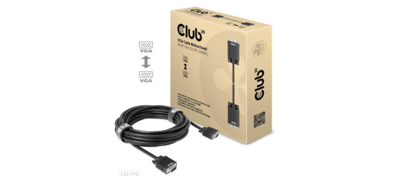 The Club 3D CAC-1710 VGA Cable Bidirectional M/M 10m/32.8ft 28AWG links any VGA-equipped desktop, laptop or adapter to a monitor, display, beamer or projector with a 15-pin VGA Female port. Ideal for at home or work, the cable creates a reliable connection for anything from gaming to video projection and supports up to Full HD 1080p(max. resolution of 1920 x 1080).