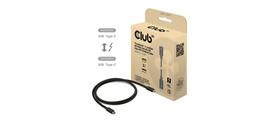 Popis Club3D Kabel Thunderbolt 5, 80/120Gbps, Certifikovaný kabel, 1x 4K540Hz, 2x8K240Hz, PD 240W, 1m