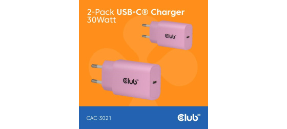 Popis Club3D Nabíječka, USB-C, Power Delivery 15V/2A, 2-pack, růžová