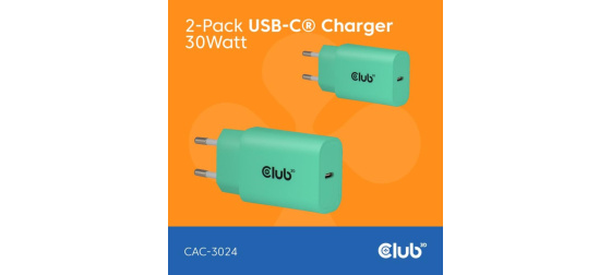 Popis Club3D Nabíječka, USB-C, Power Delivery 15V/2A, 2-pack, zelená