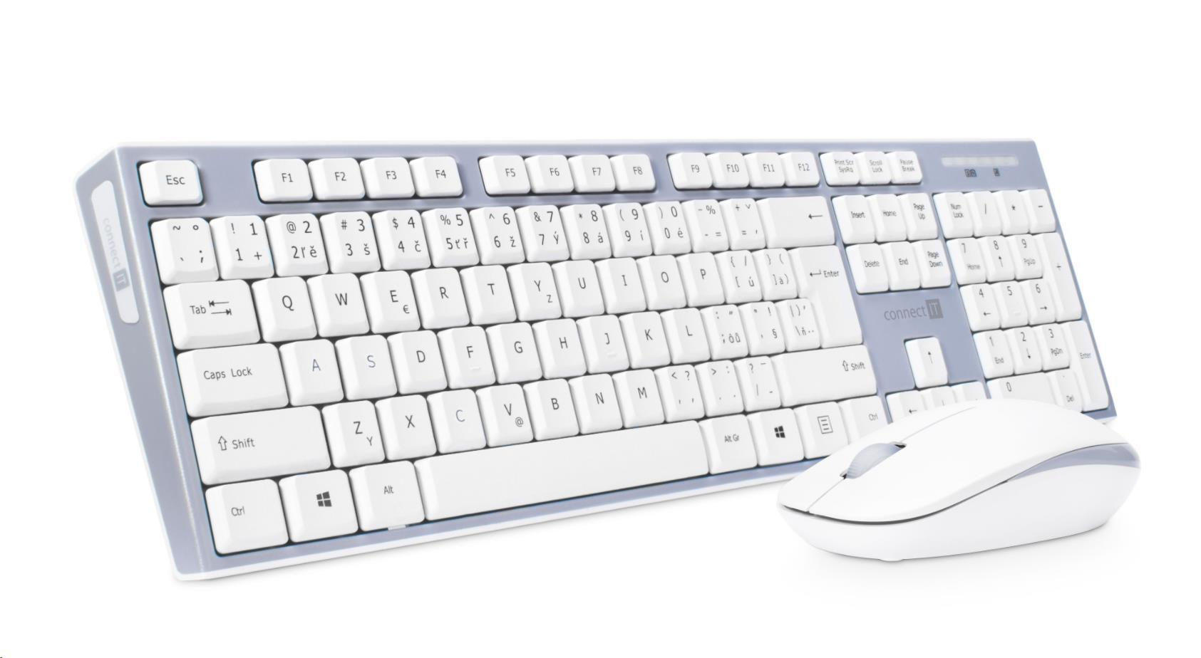 Bezdrátový set optické myši a tenké klávesnice v bílo-šedém designu