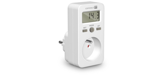 Digitální měřič CONNECT IT "PowerMeter" s jednoduchým designem slouží k měření spotřeby elektrické energie různých domácích spotřebičů. Měřič disponuje velkým LED displejem a jednoduchým ovládáním. Díky tomu je velmi přehledný a spolehlivý.